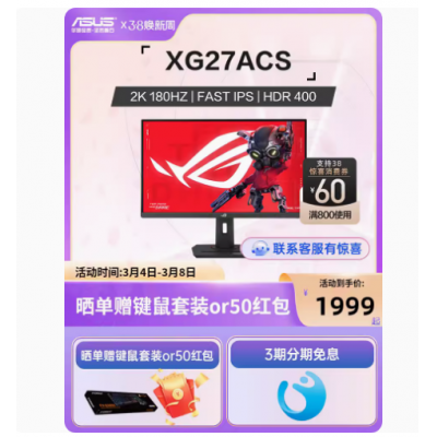 首页 > 数码 > 数码产品 > ROG XG27ACS绝杀27青春版 显示器电竞180Hz 27英寸2k显示屏幕电脑